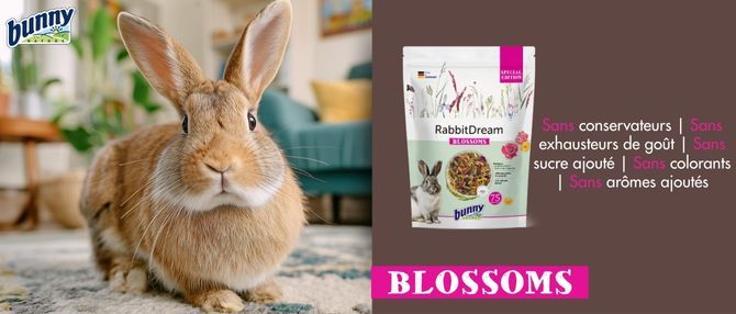 Rabbit Dream SPECIAL EDITION BLOSSOMS est un aliment complet pour lapins qui offre un mélange harmonieux de 63 plantes & herbes issues de prairies non traitées.