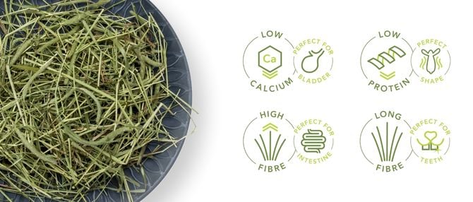 Bon foin d'appétence par contre ne pas donner tous les jours sauf si votre animal à besoin d'un foin pauvre en calcium