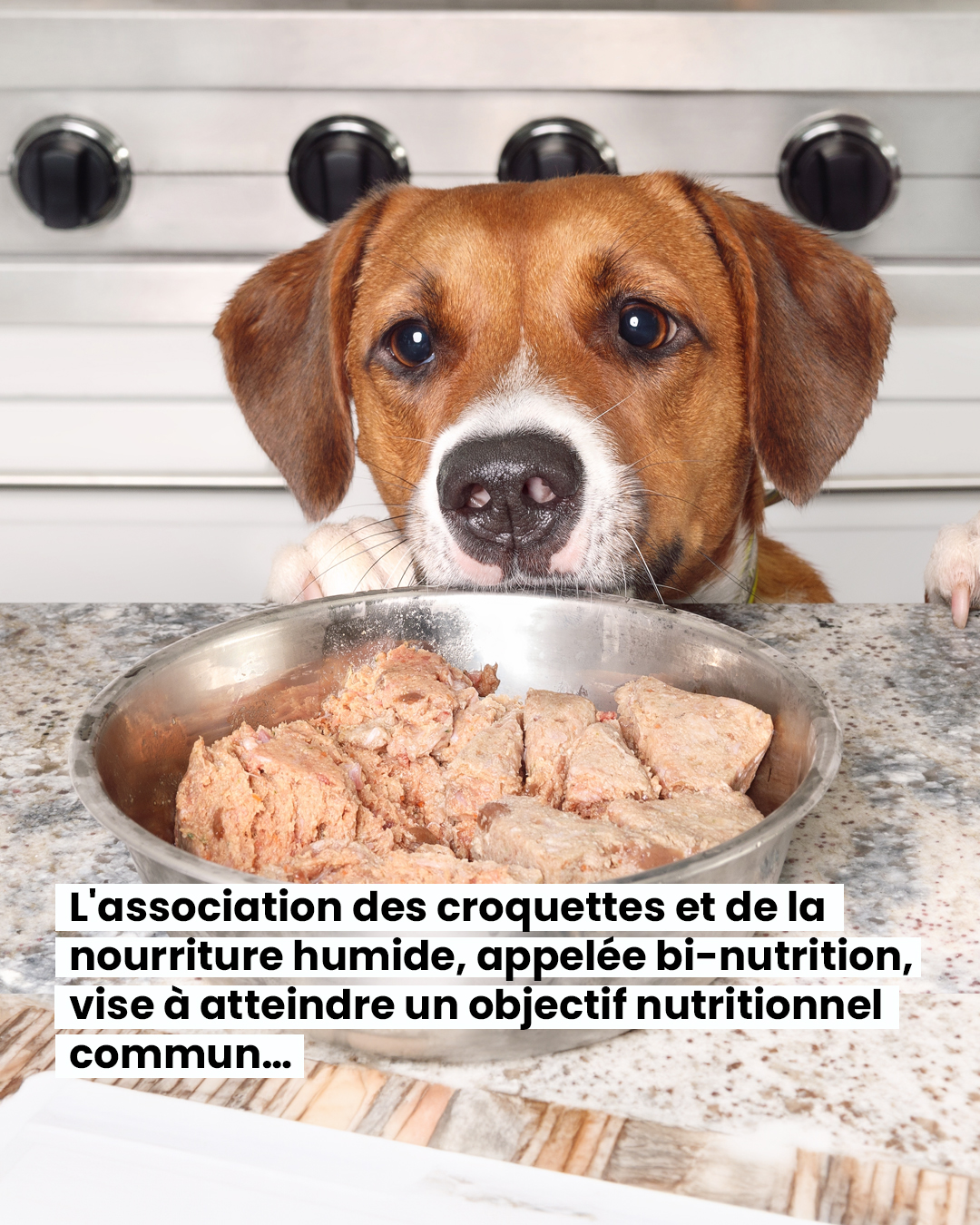 La bi-nutrition, ou la combinaison de croquettes et de nourriture humide (comme les pâtées et les gelées), peut offrir de nombreux bénéfices à votre chien. Cette routine permet de maintenir votre compagnon hydraté et lui assure également une alimentation équilibrée et variée.