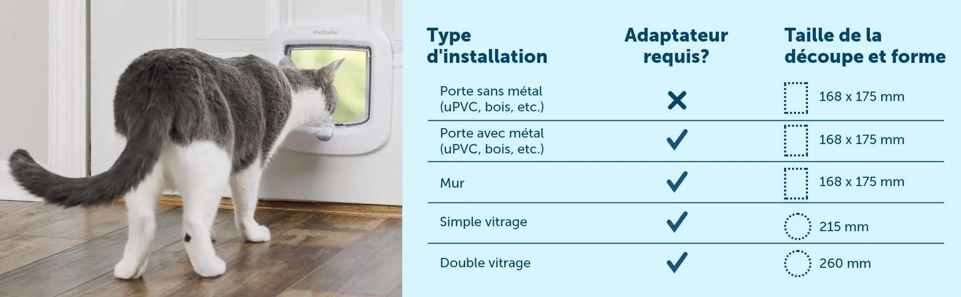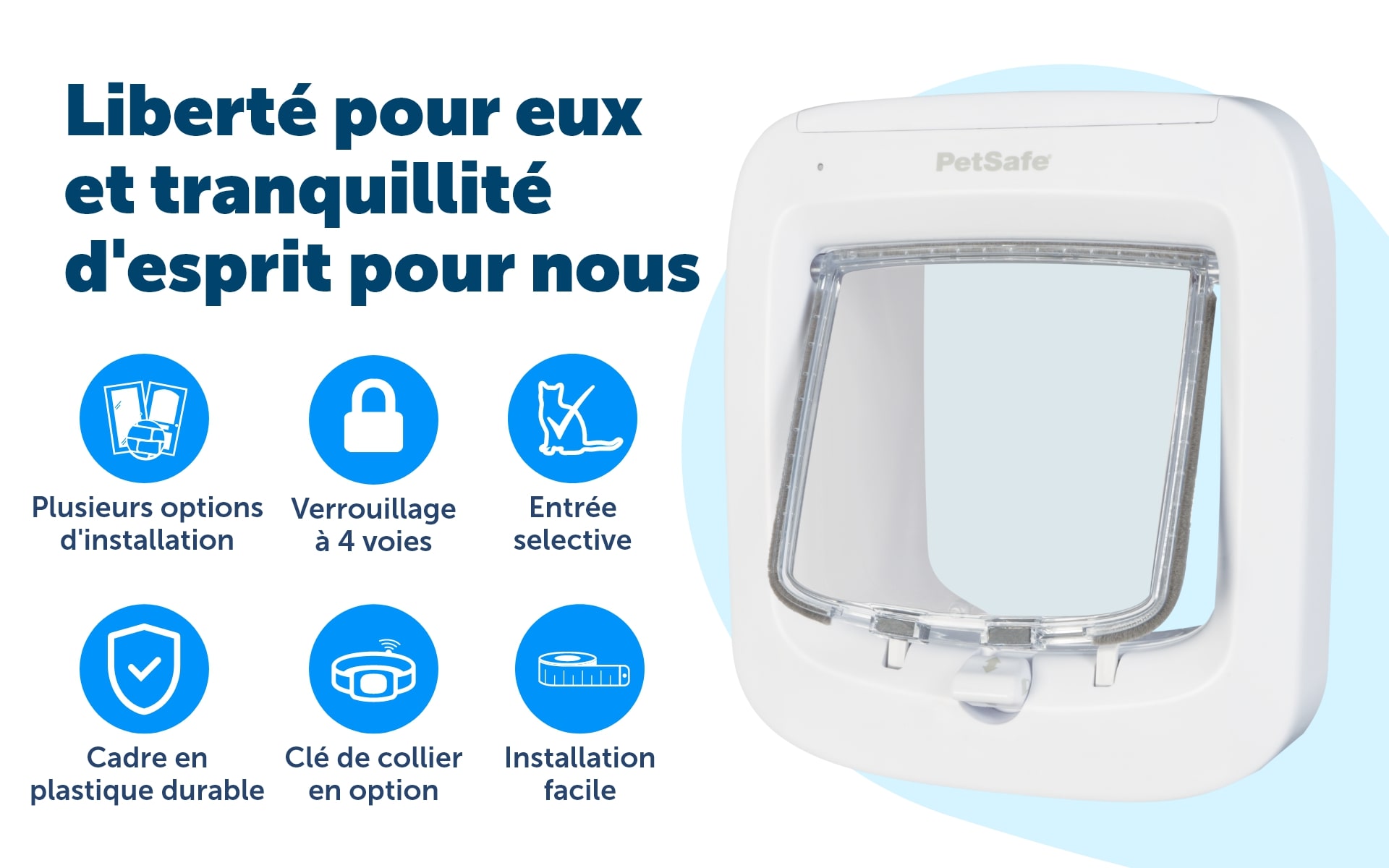 Grâce à sa technologie avancée d’entrée sélective, la porte à puce électronique PetSafe® a été conçue pour permettre aux animaux un accès facile au monde extérieur tout en gardant les chats/chiens indésirables à l’écart du domicile. Mettant en œuvre la technologie d’identification par radiofréquence (RFID), cette porte à puce électronique fonctionne par la lecture de la micropuce unique de l’animal sans nécessiter de collier ou autre accessoire. Lorsque le chat ou le chien s’approche de la porte d’accès, cette dernière s’ouvre uniquement si la puce détectée a été enregistrée. La porte comporte un système de verrouillage à 4 positions qui permet de gérer les accès. Il est également possible d’acheter des clefs d’accès pour les animaux qui ne seraient pas munis de puce électronique.
