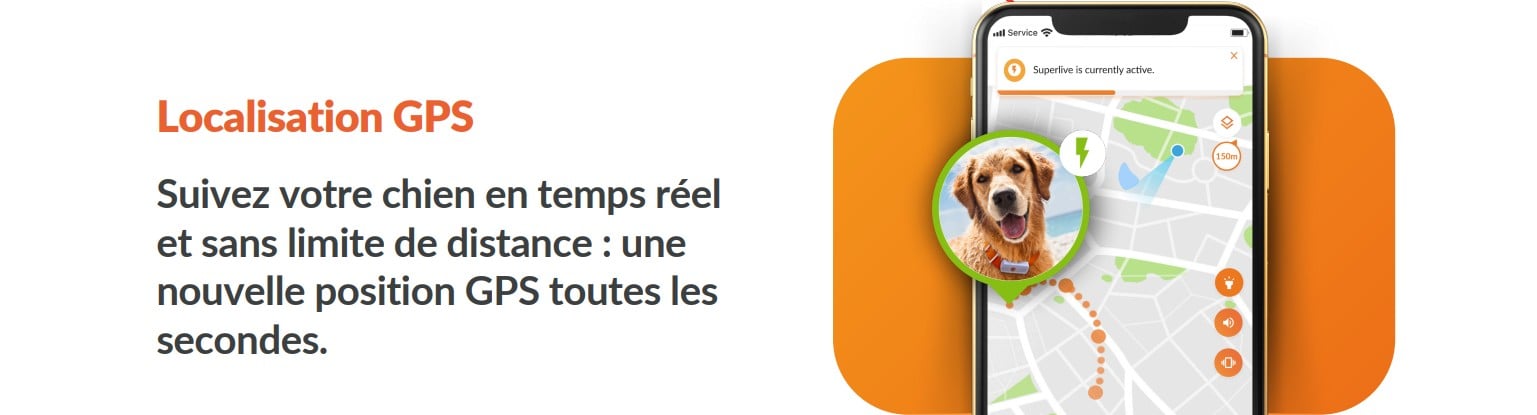 Le plus petit traceur GPS pour chien du marché. Weenect Dogs est un collier GPS pour chien qui permet aux maîtres de suivre sa position depuis leur téléphone. La localisation se fait en temps réel et en illimité, vous savez donc à tout moment où se trouve votre chien.
